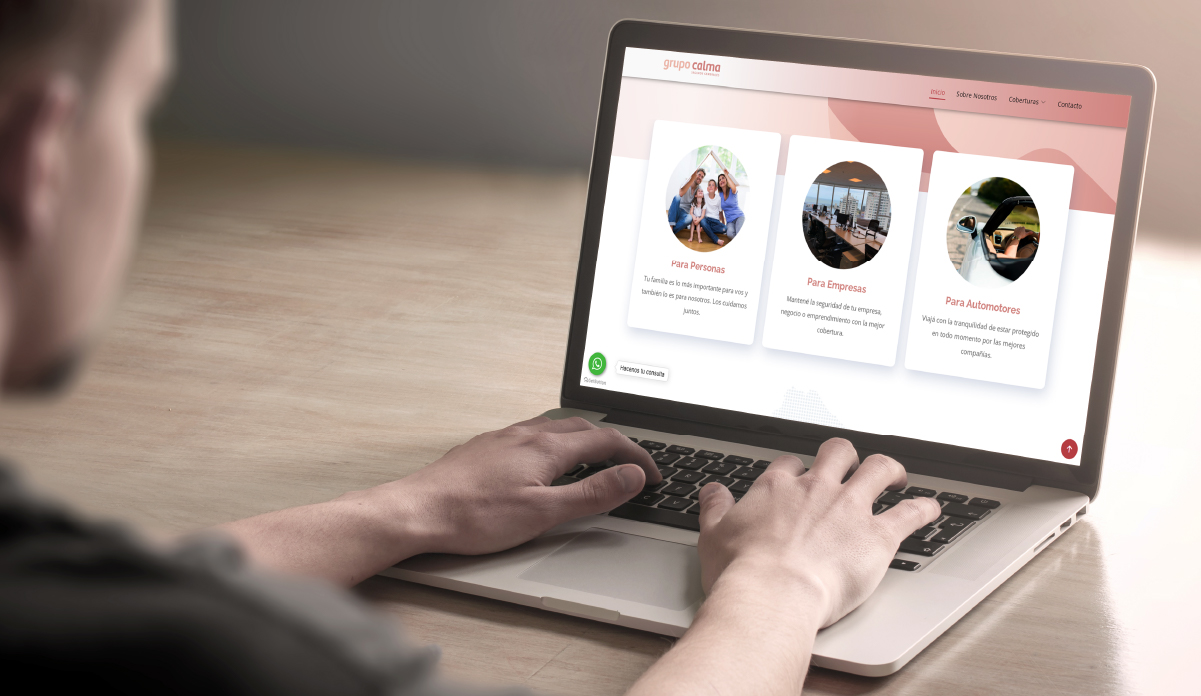 Se realizó el diseño y desarrollo de identidad de marca para Grupo Calma, una empresa que ofrece seguros generales. Se le dio forma a la idea de su dueña, la cual quería transmitir calma y tranquilidad a las personas que podían sufrir un siniestro. Alineado al branding de la empresa, se desarrolló el diseño y producción de las tarjetas personales. El proyecto concluyó con el desarrollo web completo que abarcó diseño, maquetado, programación y gestión del mismo.
